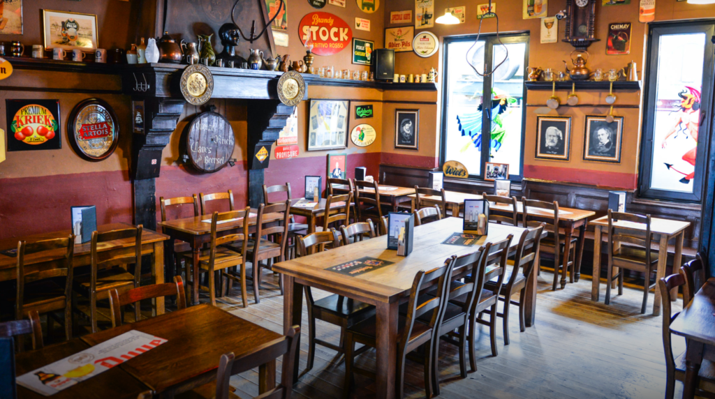 Depuis le 19ème siècle, ce café au cadre typique n’a pas beaucoup changé. En hiver, c’est le toujours le même authentique poêle à bois qui réchauffe une atmosphère déjà chaleureuse. Et depuis plus de 100 ans, c’est une clientèle d’étudiants, de poètes et de ces intellectuels qui refont le monde autour d’une bonne bière belge, qui se mêlent aux gens du quartier, gens de passage et habitués.