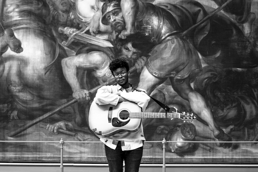 Comme il le dit lui même, il existe une continuité intéressante entre sa musique et ses études de philosophie. C’est donc dans un décor gigantesque que nous avons fait jouer ce tout jeune artiste de 19 ans.