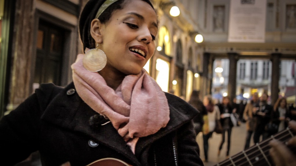 Lorsque nous l’avons rencontrée en décembre dernier, il faisait un froid glacial. Malgré cela, Mariama s’est baladée avec sa guitare et son sourire dans les rues en pavés de Bruxelles afin de nous dévoiler quelques unes de ses compositions. D’abord « No Way », joué sur la Grand Place…