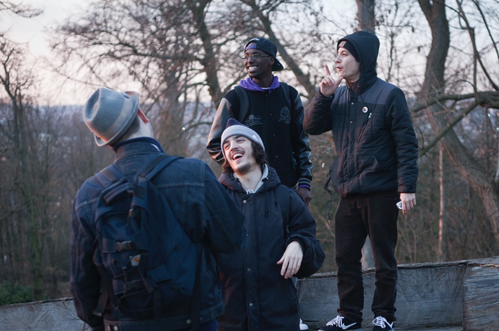 When we decided to shoot in the Dudenpark at sunset we didn’t know what to expect and wondered whether they would play the game.  Because “La Suite” is such an exceptional old school rap album we were really glad to capture this unique musical moment. 1995 in a Brussels park, quite funny actually when you think of it! When they appeared in the park we saw a bunch of dudes jumping around and making fun of each other. Sneazzy, Fonky Flav’, Nekfeu, Areno Jaz, Alpha Wann shared the mic, Dj Lo launched the music on a portable speaker and the rappers completely let go. Once our cameras made their entry, the five rappers started to play and let go of their devastating flow.  As can be viewed in the video, the atmosphere was relaxed, joking, laughing, cracking up… Six young stars but first and foremost six young friends!