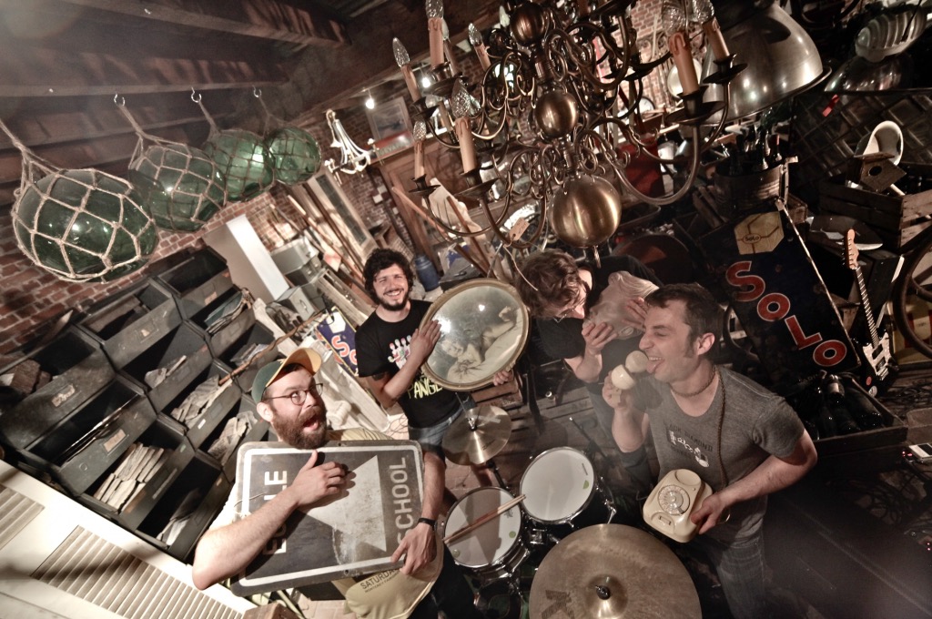 De muzikanten kwamen glimlachend aan en waren opgewonden door het idee dat ze deze plek in een tijdelijke concertzaal gingen omtoveren. Ze wandelden rond in de winkel en stelden een decor samen met spullen die ze het liefst hadden : een maquette van een boot, reclameborden, oude wandelstokken, foto’s, … Voor ons speelden ze twee nummers met een energie die voor ons heel herkenbaar is : “Good For Nothing”, en een exclusief nummer “Is That All About Money” uit hun eerste album.